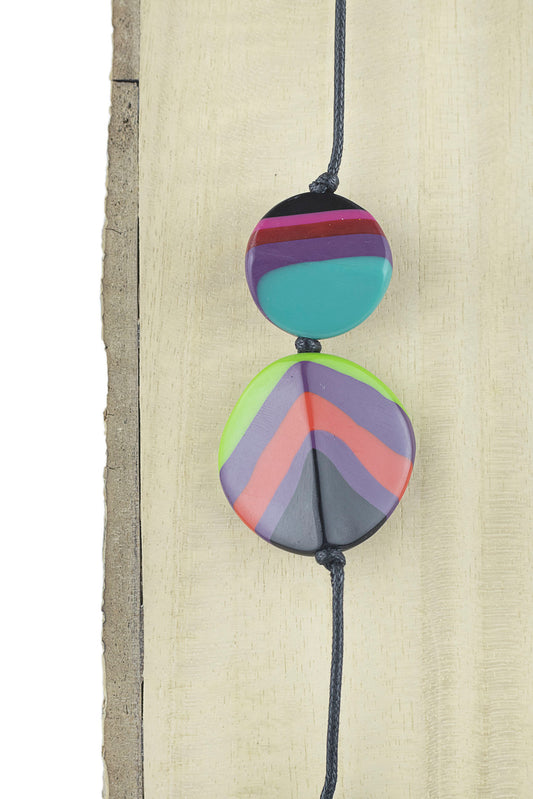 With unique features: symmetrical finishes of its pieces, with adjustable cotton cord and in different resin colors. Some of the techniques we use to achieve such exclusive finishes are: