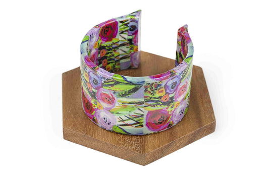 Wooden bracelet docoupage flowers