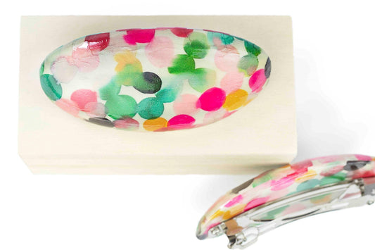 Le nostre mollette per capelli sono piccole opere d'arte, progettate con passione e meticolosità per esaltare la tua bellezza in un modo unico. Ogni molletta è intrisa di creatività e originalità, rendendola molto più che un semplice accessorio per capelli.