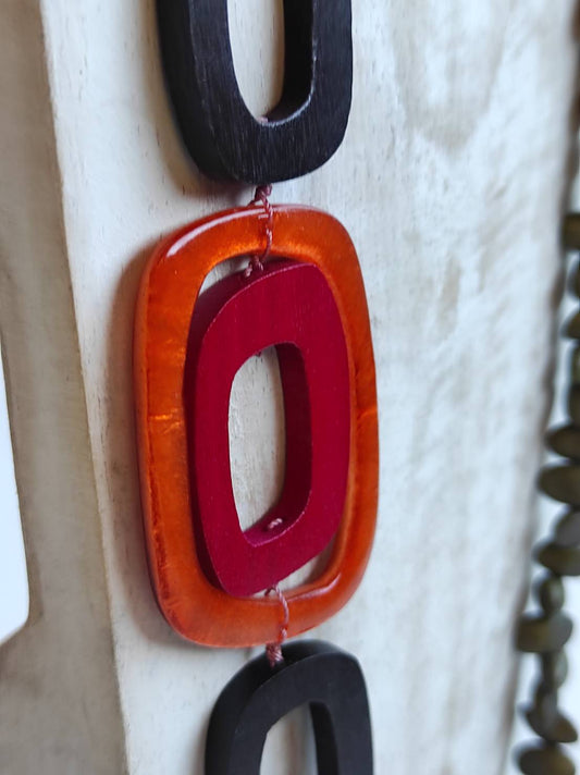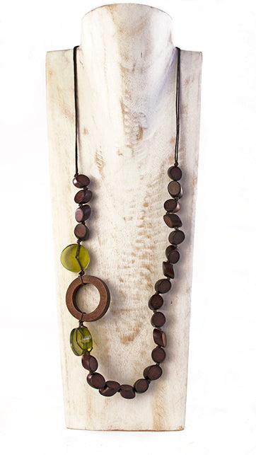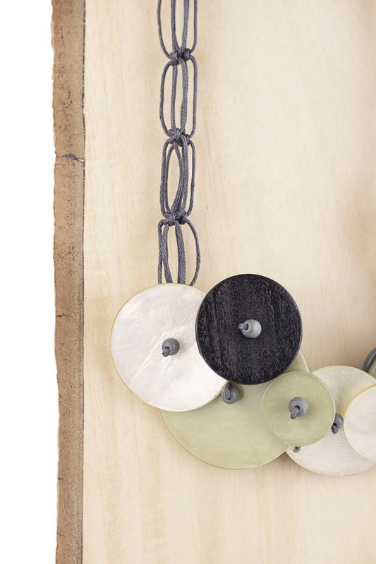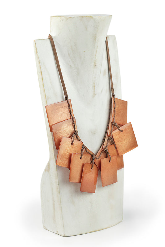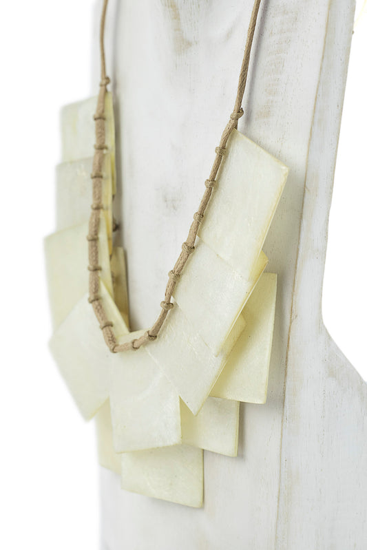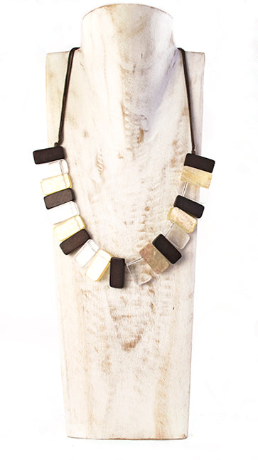 Collana con pezzi di legno e rettangolo in capiz