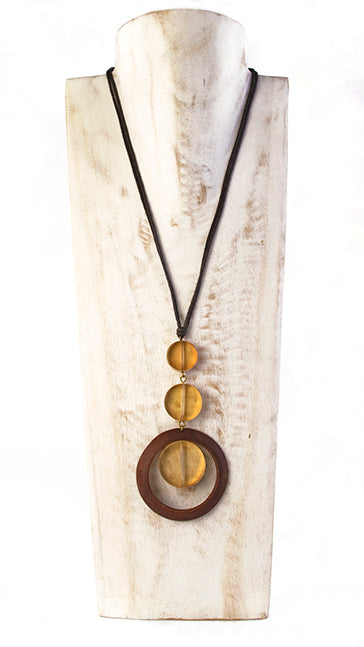 Collana con pezzi di legno e resina.