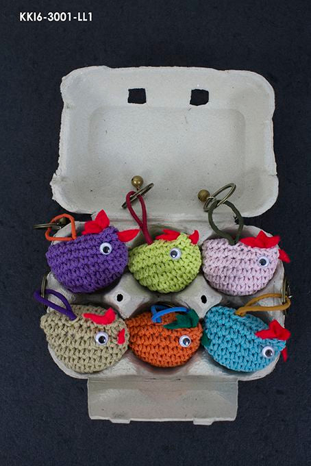 Confezione da 6 portachiavi con galline intrecciate a mano