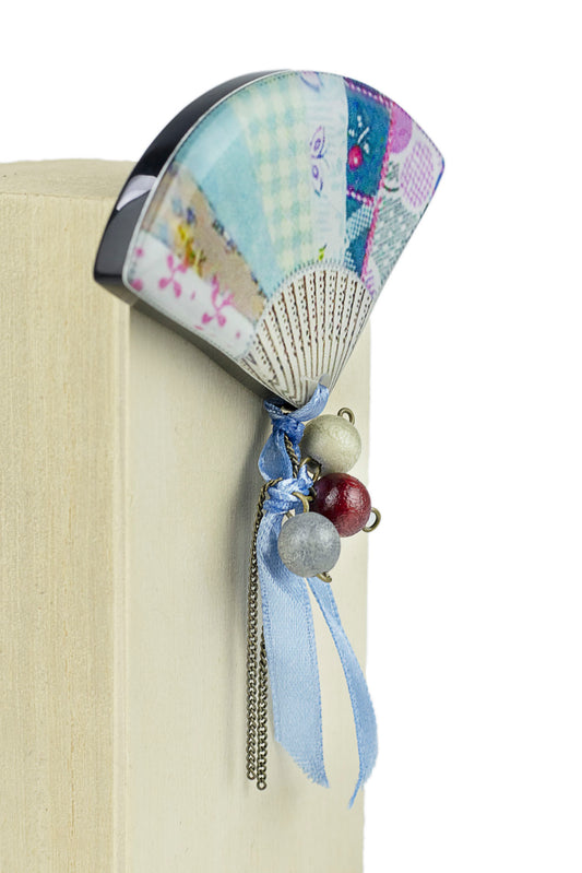 Spilla con uccello collage rosa e verde