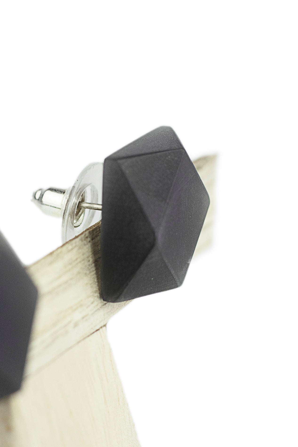 Orecchino piccolo pezzi irregolari in resina nera con chiusura a bottone