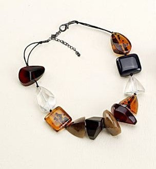 COLLANA CORTA CON PEZZI IN RESINA COLORATA TRASPARENTE DI ALTO EFFETTO.