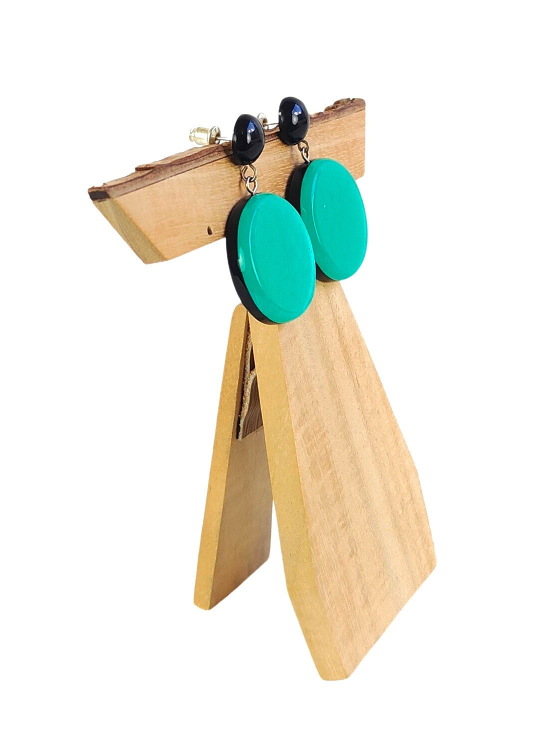 Pendientes circulares que combinan elegancia y originalidad. Cada pieza presenta una delicada hoja de papel de plata encapsulada bajo resina de color, creando un efecto visual único y sofisticado. El diseño circular ofrece versatilidad para cualquier ocasión, desde lo casual hasta lo formal. La resina protege la hoja, garantizando durabilidad y manteniendo el brillo plateado intacto. Perfectos para quienes buscan accesorios con carácter y un toque artesanal diferente.