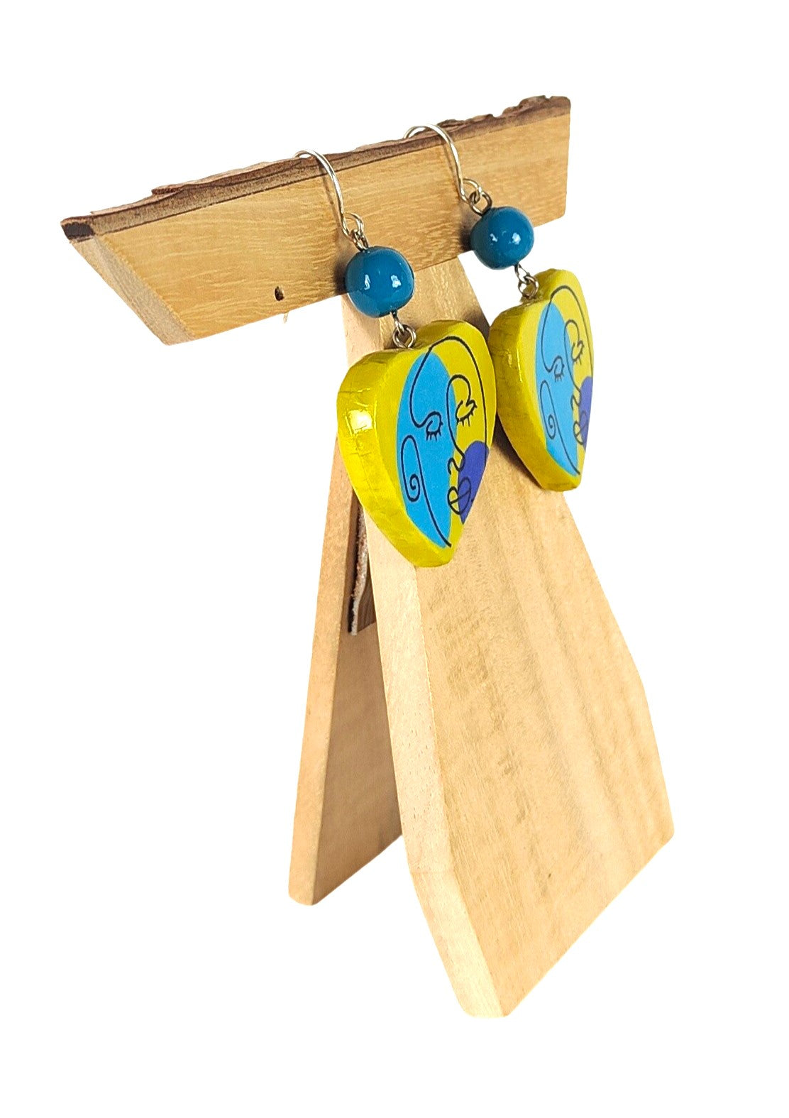 Pendiente con forma de corazón elaborado en madera ultraligera, perfecto para un uso cómodo durante todo el día. Diseño decorativo con técnica decoupage que añade un toque artesanal y personalizado. Cierre seguro de gancho que garantiza que no se caerán. Ideal para quienes buscan accesorios sostenibles y originales que combinen estilo con ligereza.