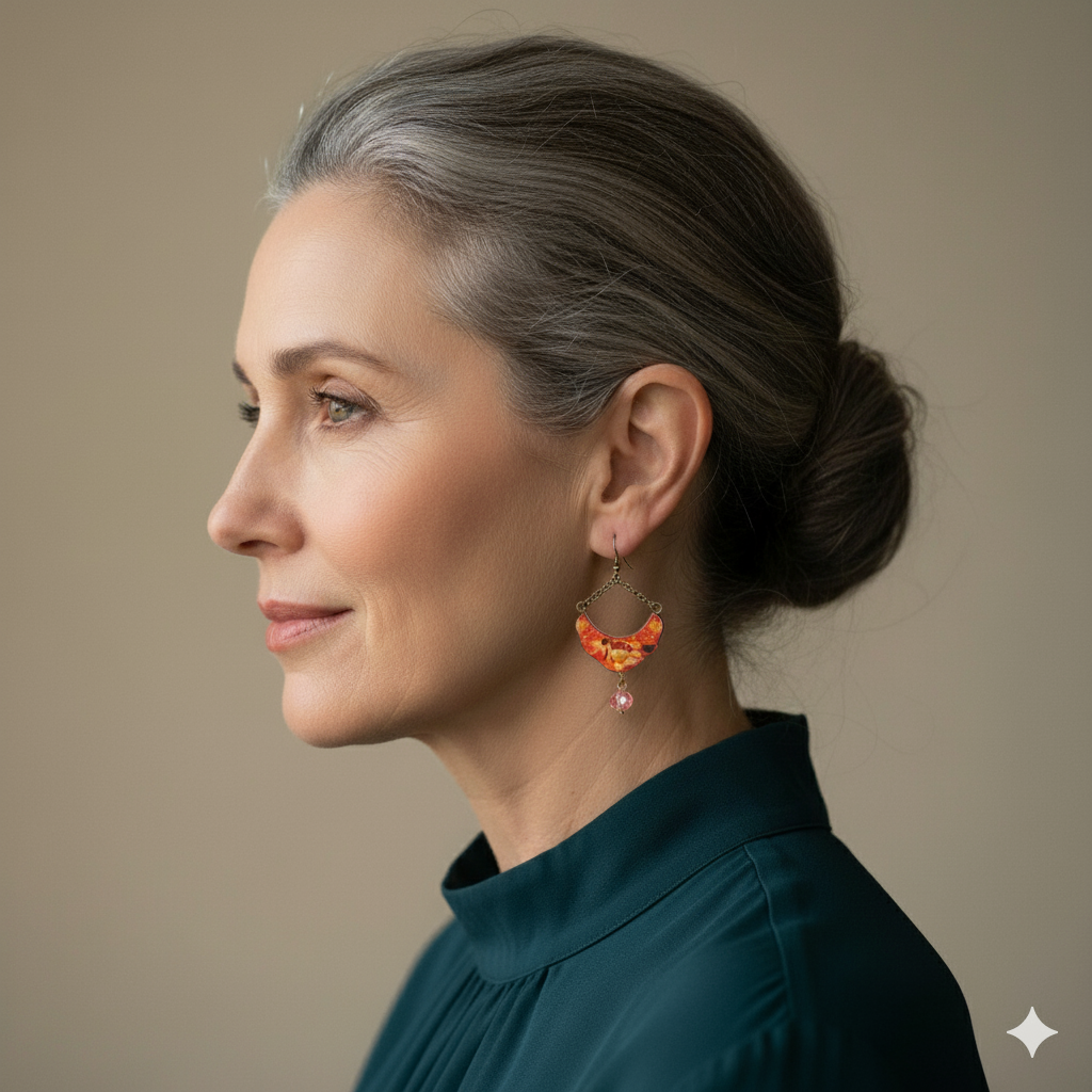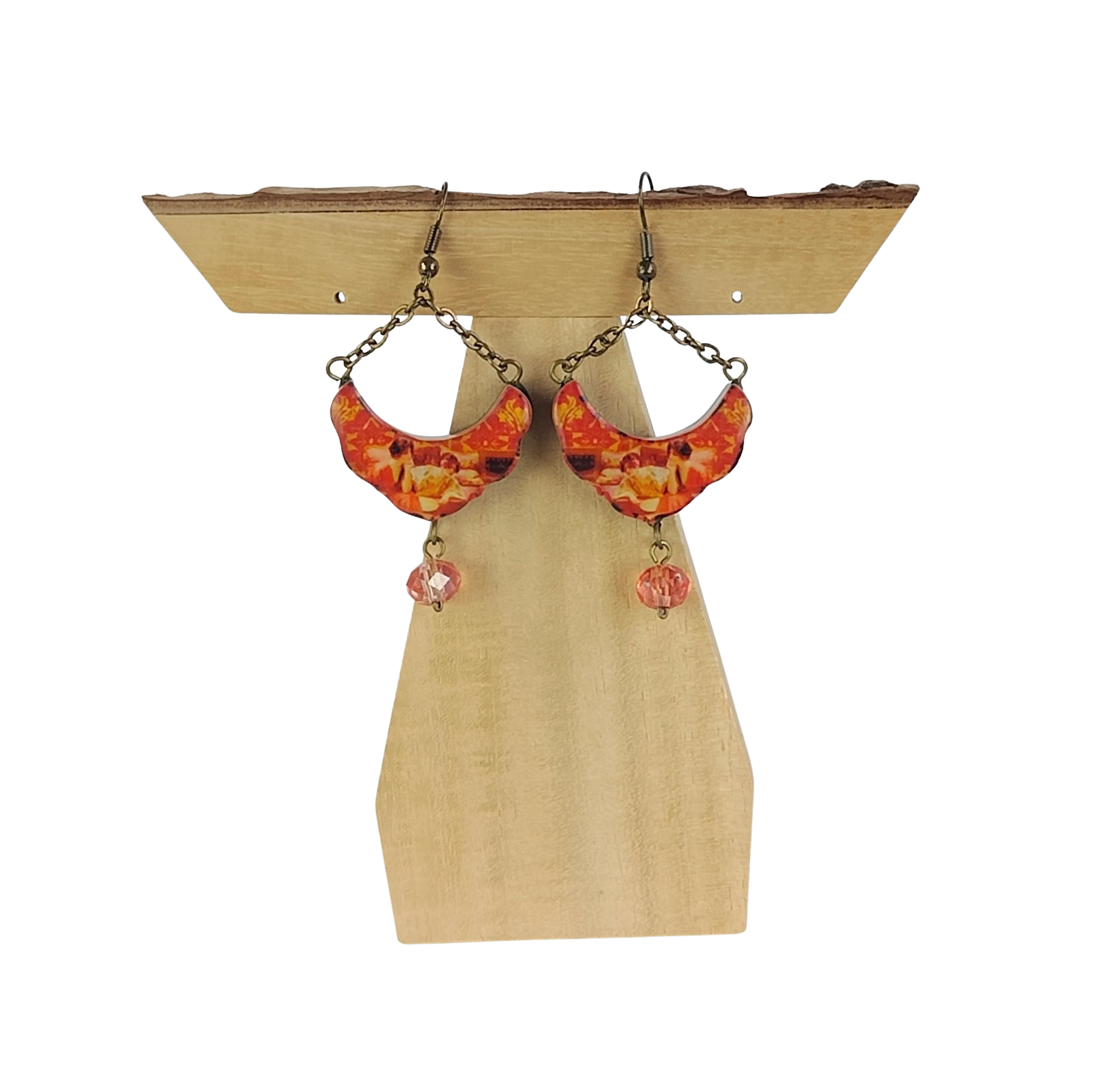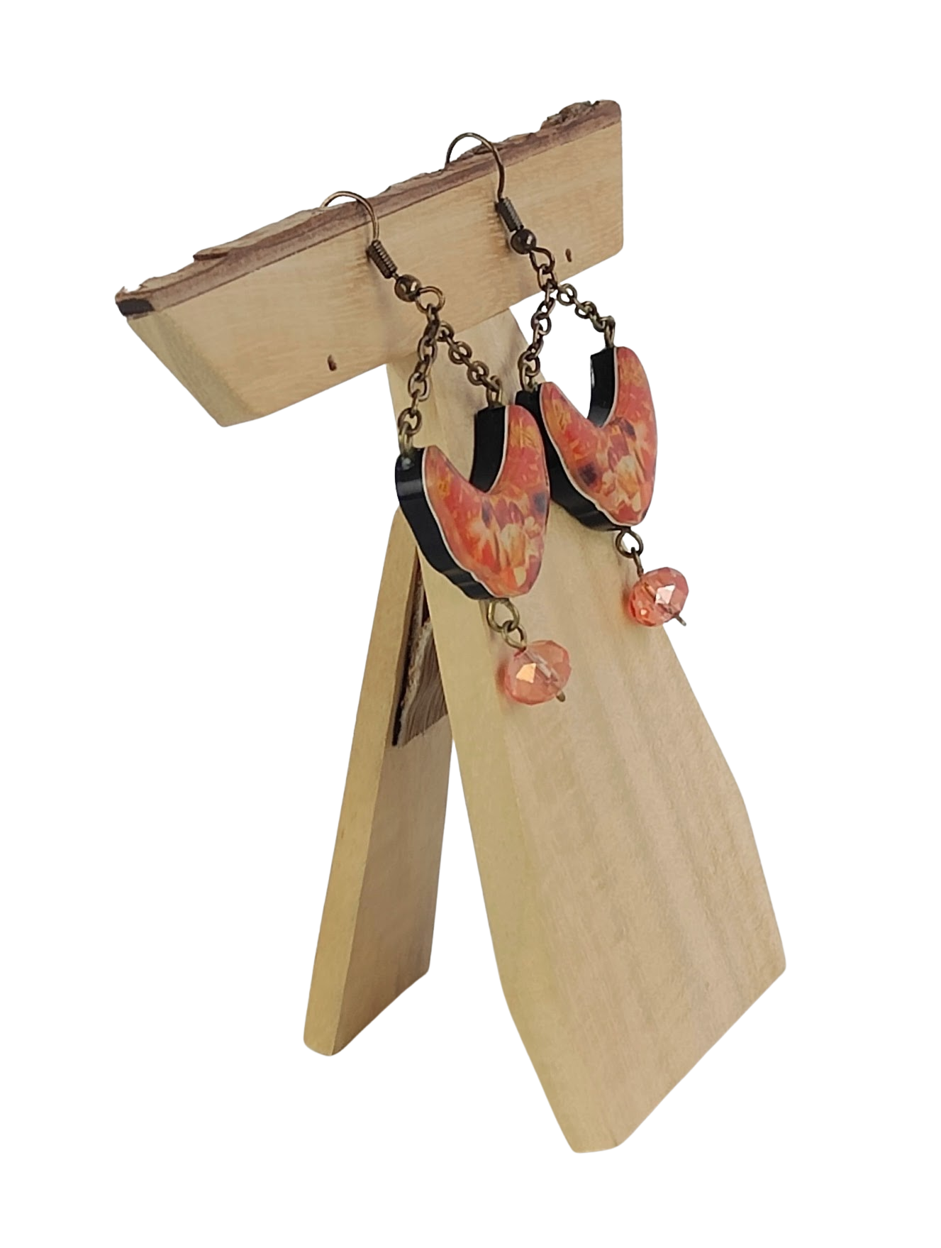 Pendientes tipo hook con cadenas que combinan cristal y resina, adornados con imágenes distintivas de las colecciones -PAXTON-, -MOWBRAY- y -G.ORLANDO-, perfectos para un estilo refinado y contemporáneo.