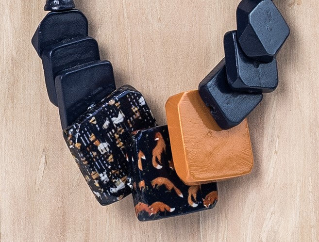Collar ajustable cuadrados de madera y decoupage