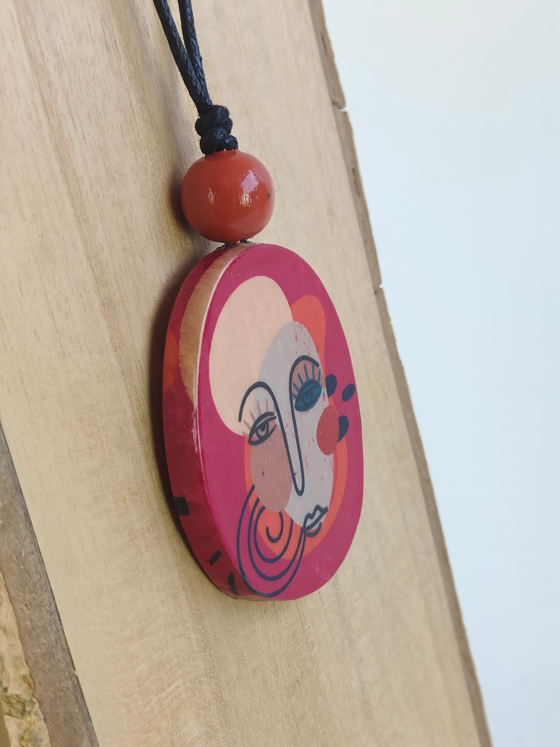 Descubre el toque artístico y divertido con este colgante Carita, inspirado en el estilo único de Picasso. Fabricado con la técnica de decoupage, cada pieza es una obra de arte llena de color y personalidad. El cordón de algodón ajustable asegura un ajuste cómodo para cualquier look, perfecto para quienes quieren llevar el arte siempre cerca. ¡Exprésate con estilo y un guiño creativo!