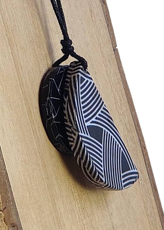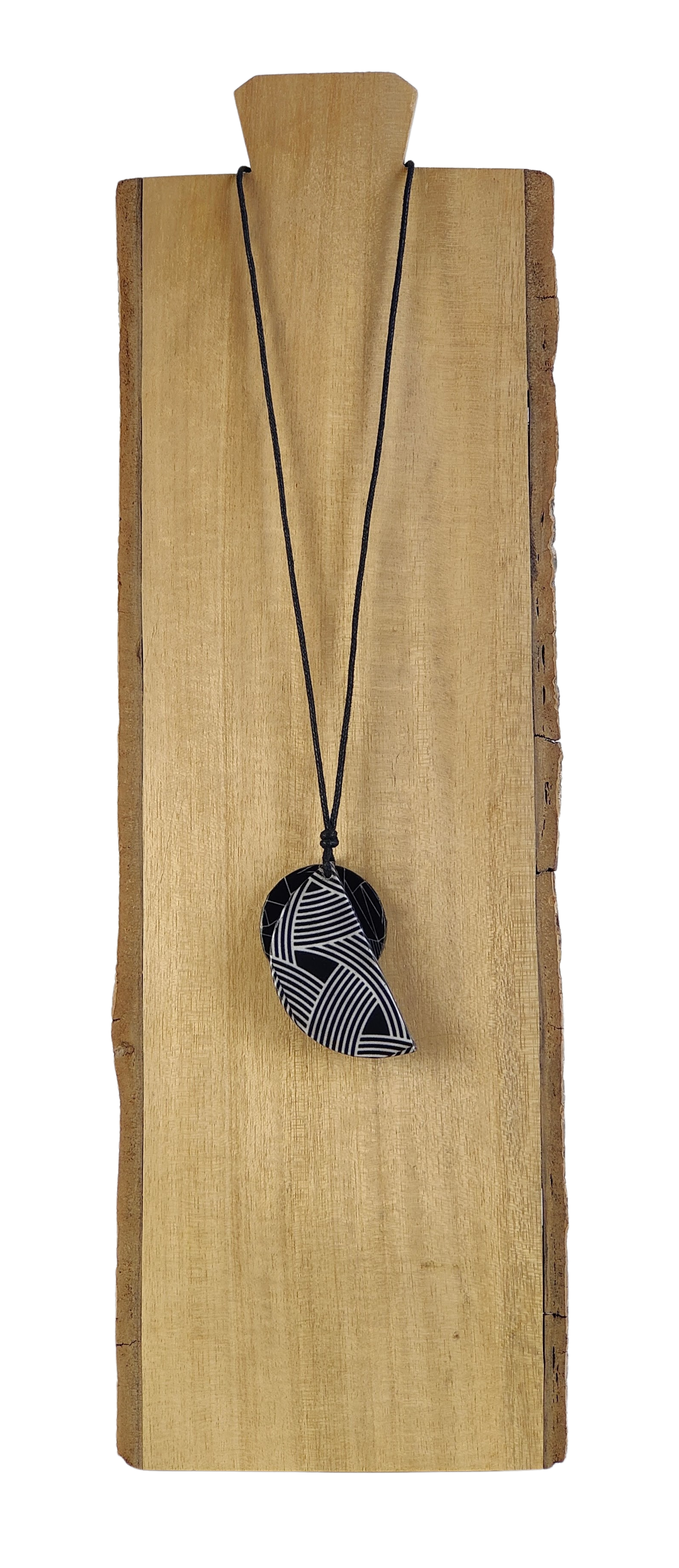 Este colgante media luna combina elegancia y originalidad gracias a sus dos piezas superpuestas elaboradas con la técnica de decoupage. Su diseño incluye una base redonda y una pieza semicircular encima, creando un efecto visual único. El cordón de algodón ajustable garantiza comodidad y un ajuste perfecto para cualquier ocasión. Ideal para quienes buscan un accesorio artesanal que destaque su estilo con un toque sofisticado y moderno.
