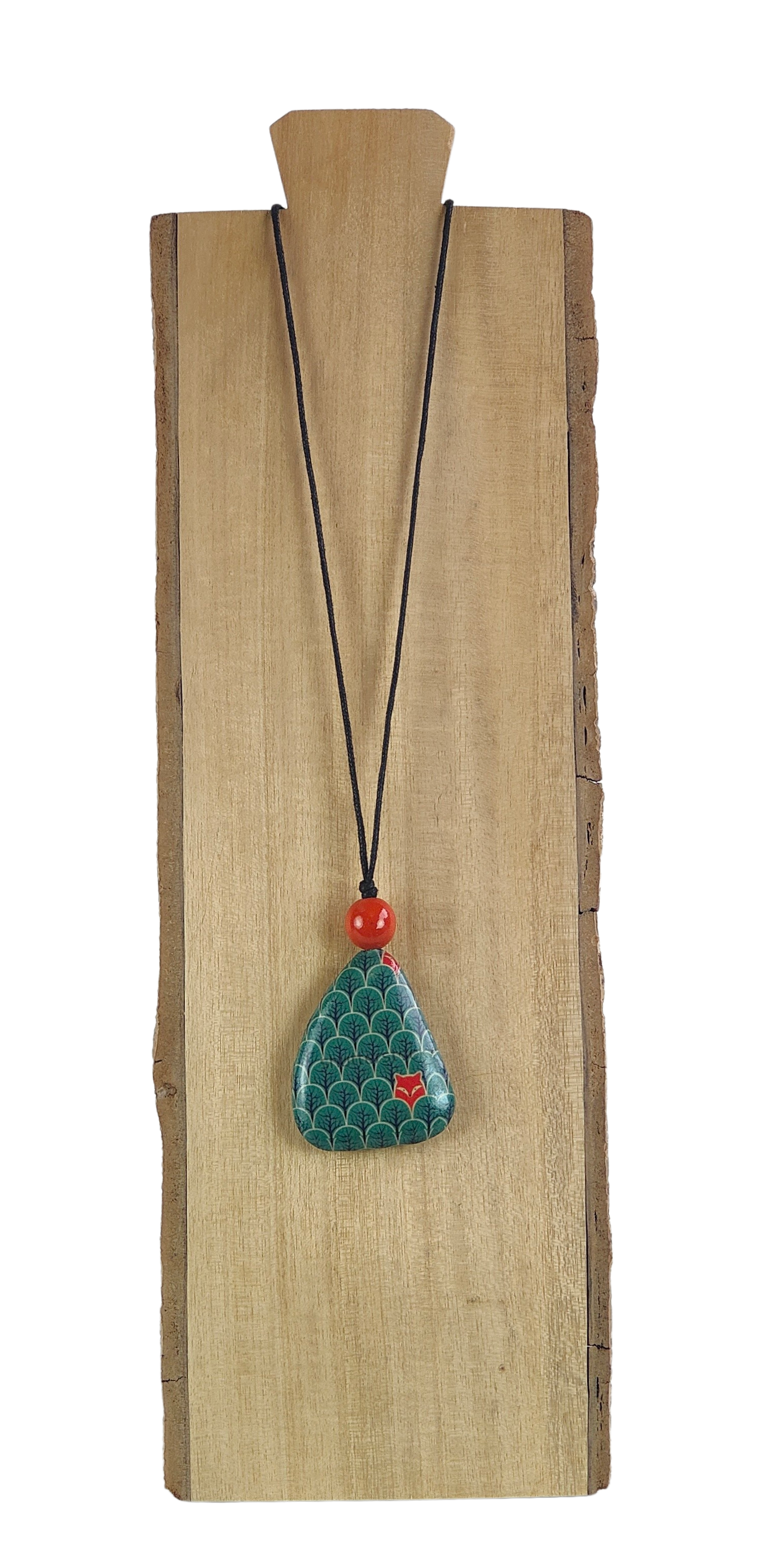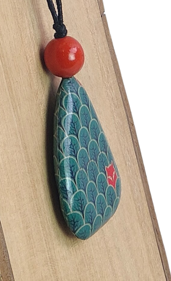 Este colgante único está compuesto por piezas de madera y decoradas con delicada técnica de decoupage. Su diseño superligero lo hace cómodo para llevar todo el día, mientras que el cordón de algodón ajustable garantiza un ajuste perfecto para cualquier estilo. Añade un toque de arte y personalidad a tu look con esta joya artesanal exclusiva.