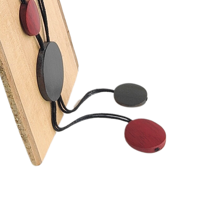 Este collar atrevido combina círculos de madera en tamaños variados con un diseño asimétrico que captura todas las miradas. La pieza inferior destaca por sus dos círculos extras, aportando dinamismo y movimiento único. Cada collar está elaborado y pintado a mano, garantizando autenticidad y un toque artístico que no pasa desapercibido. Perfecto para quienes buscan un accesorio con carácter y estilo personal.