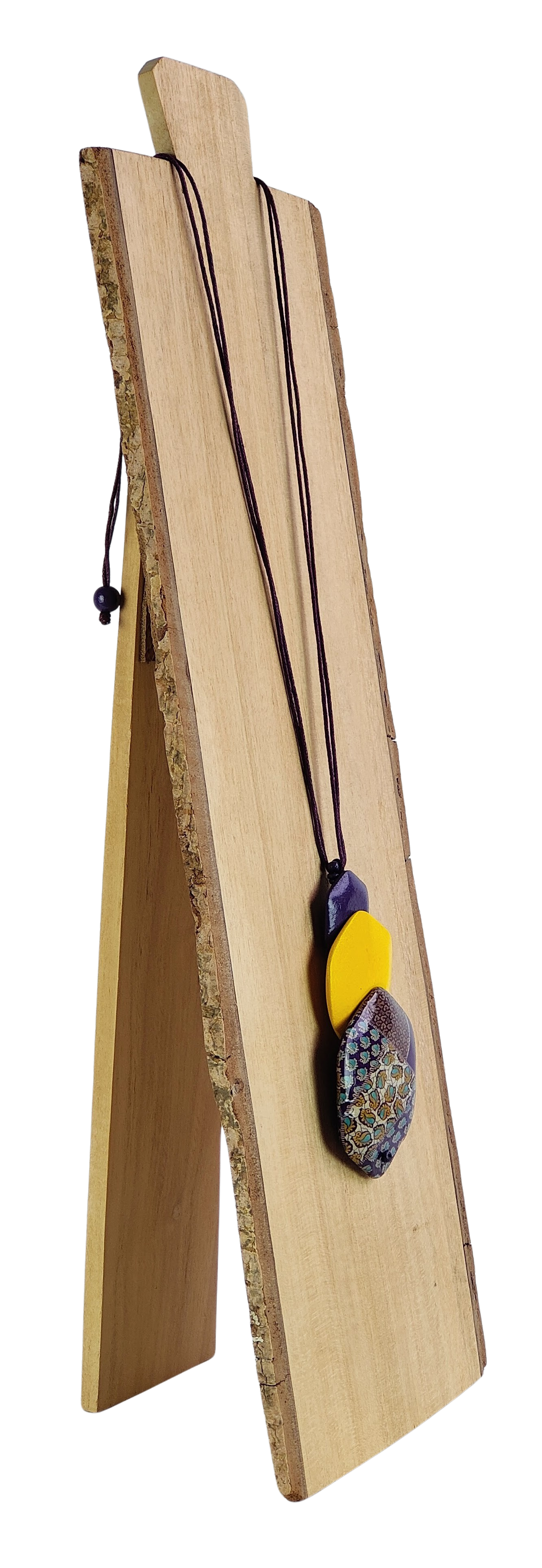 Descubre el collar ajustable con tres piezas hexagonales, creado con la técnica artesanal de decoupage . Su diseño ligero garantiza comodidad durante todo el día, mientras que su estilo único realza tu look con elegancia y personalidad. Dale un toque especial y sofisticado a tu colección de accesorios con esta pieza imprescindible.