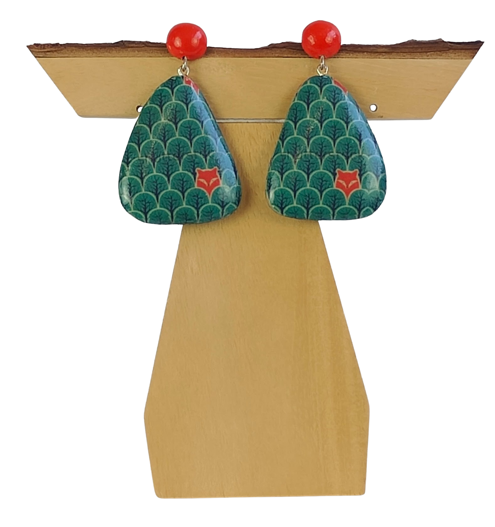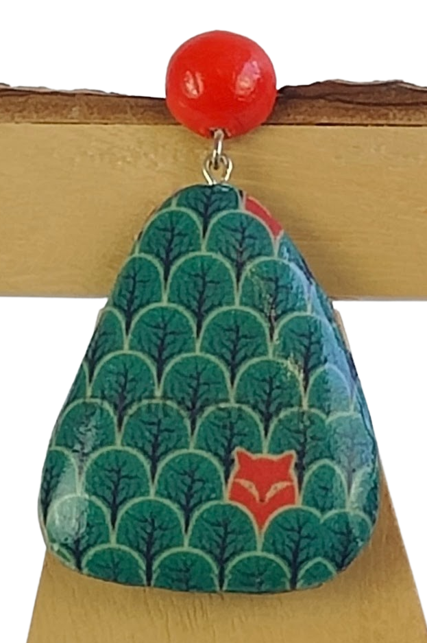 Este pendiente triangular de forma orgánica rompe con lo tradicional gracias a su técnica decoupage única. Su diseño ligero y audaz es perfecto para quienes buscan destacar sin sacrificar comodidad. El broche stud asegura un ajuste firme mientras realza tu estilo con un toque provocador y moderno. Ideal para transformar cualquier look con un detalle inesperado y sofisticado.